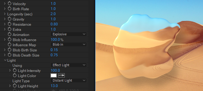 Gravity 중력과 Resistance 저항이라는 물리학 용어에 따라 결과가 다른데, 아래 그림처럼 Resistance의 기본값 0.00을 0.8로 적용하면 품어져 올라온 후에 같은 자리에서 머무는 표현을 할 수 있습니다.