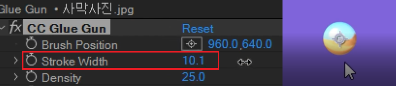 02. CC Glue Gun의 Stroke Width 값을 약 10px정도 주고, 큰 것을 원하면 더 주세요.