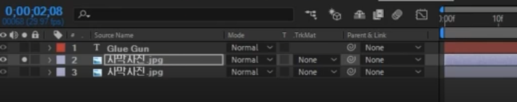 글루건은 생활에 많이 사용하는 플라스틱 형태를 녹여서 고착시키는 기능을 하는데 Ae에서는 머큐리씨 처럼 액체 같은 느낌을 표현할 수 있습니다.