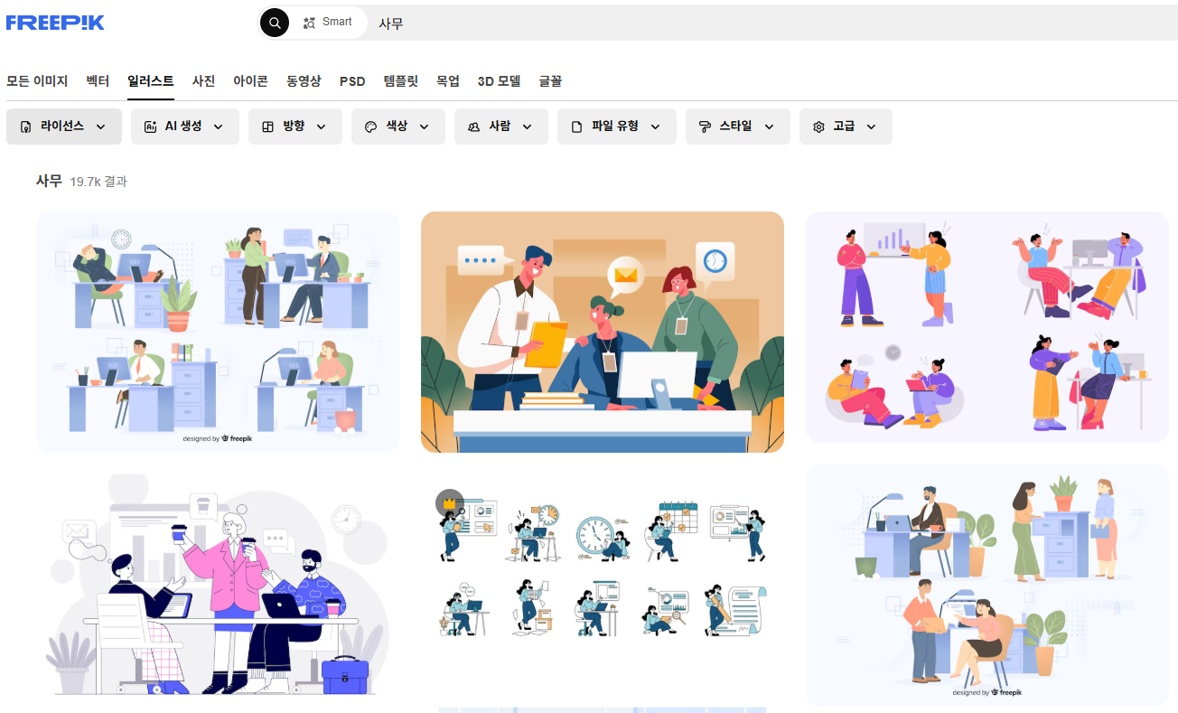 캐릭터는 대부분 일러스트레이터에서 작업한 것을 주로 활용합니다. 그림에 스킬이 부족한 분들은 freepik에서 벡터소스인 Adobe illustrator Ai / EPS 파일을 이용해서 포트폴리오의 캐릭터 모션그래픽표현 합니다.