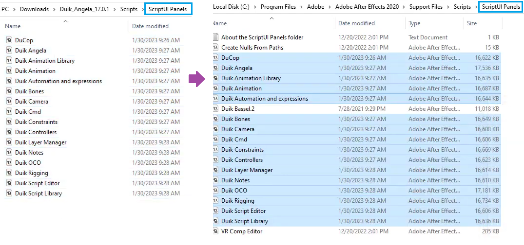 02.Duik Ángela 압축풀고 After Effects에 설치