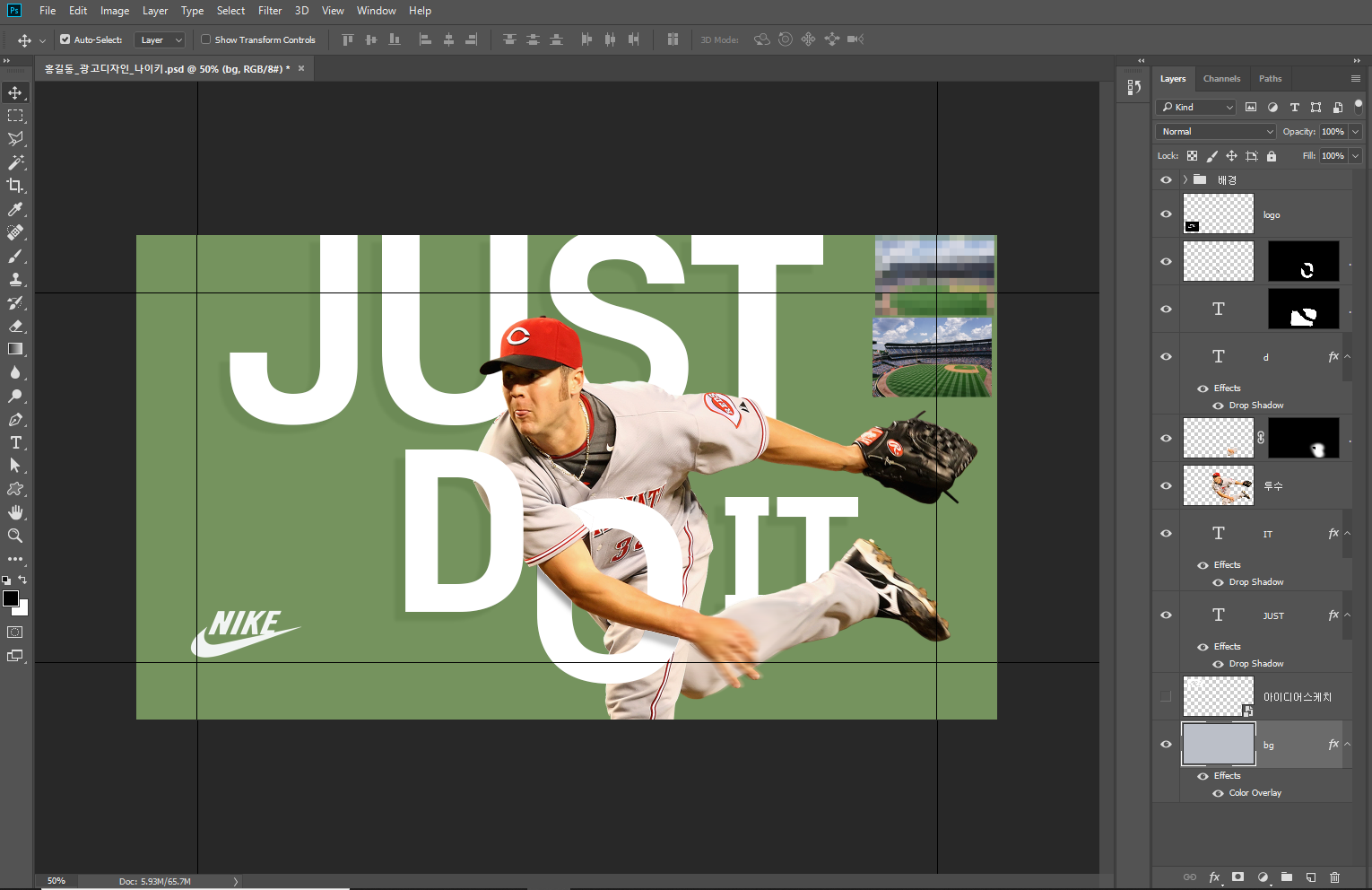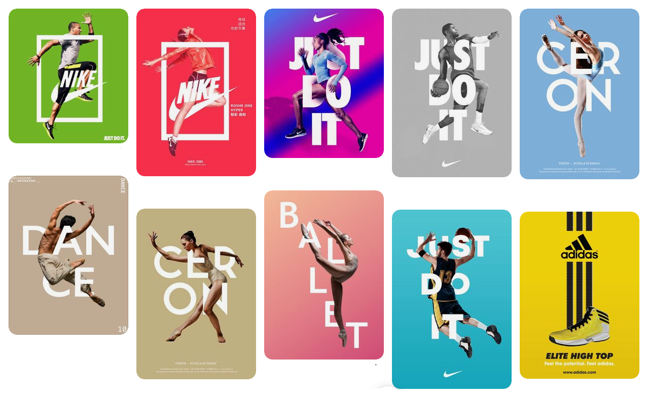 누구나 첫 디자인 시도는 타인의 작품을 모방하는 것에서 출발합니다. 같은 이미지를 찾지않고 B작업을 위해 A라는 작품이 아이디어를 제공할 수 있습니다. "이런 표현을 여기에 해본다면?" 이런 패러디로 잘 만든 우수한 광고를 목표로 잡고 패러디를 해보세요. 저는 여러분에게 스포츠브랜드인 나이키 광고를 추천합니다. 관련 스포츠 이미지를 쉽게 찾을 수 있는 방법이 있으면 좋겠지요. 타자, 투수, 경기장 등 여러분이 관심을 갖으면 원하는 이미지를 쉽게 선택할 수있습니다.