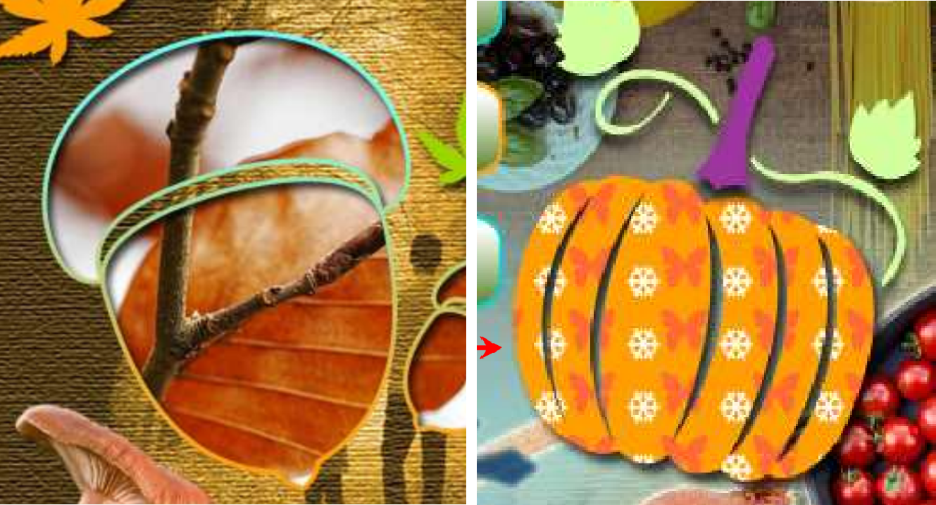 그려진 Shape를 복제하여 처리하는 도토리와 호박 형상