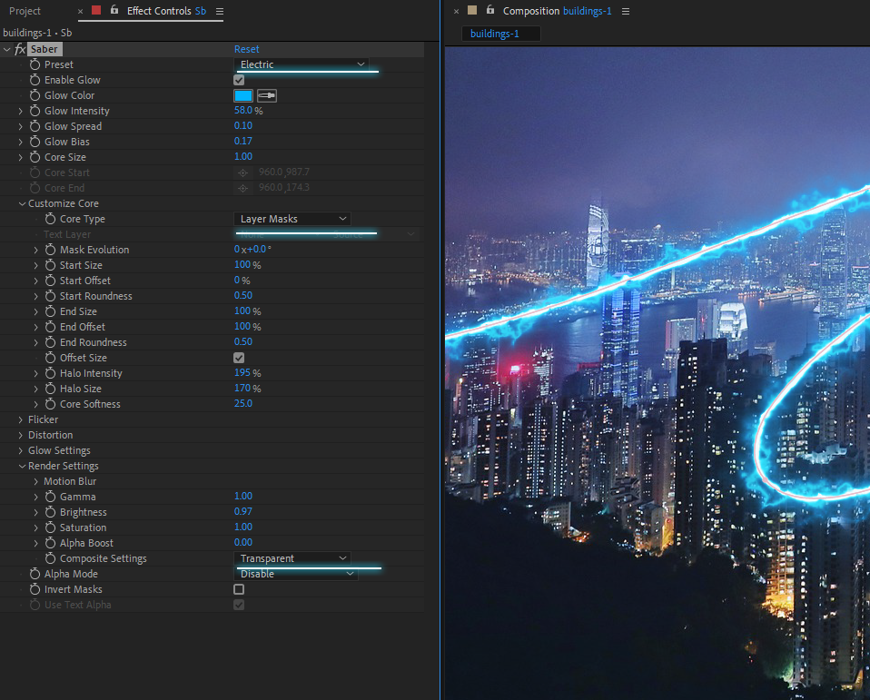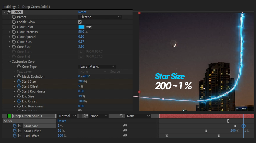 Energy Beams, SABER, After Effects, Free Plug-In, Curves, Mask Compositing Options