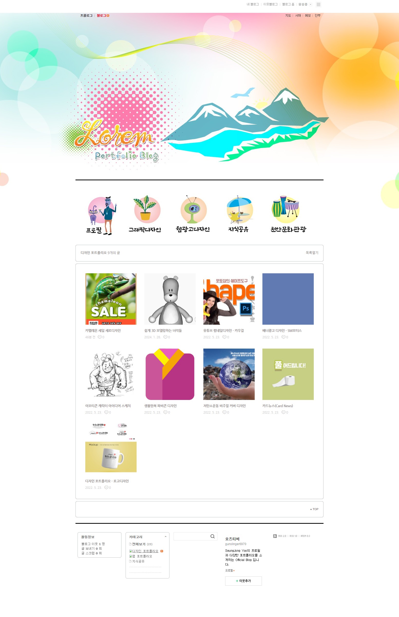 영상포트폴리오는 유튜브를 통해서 채널을 만들고 업로드하시고, 디자인과 영상등의 게시물활용은 블로그를 활용하시기 바랍니다. 한국에서는 블로그는 Daum Kakao의 티스토리와 Naver의 Blog 제작하는 방법과 스킨 소스를 공유 합니다.