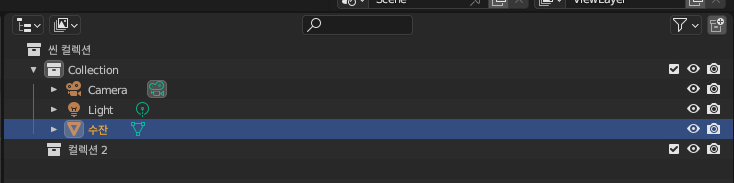 현재 블렌더 프로젝트 파일에서 필요한 대상들의 묶음 Collection