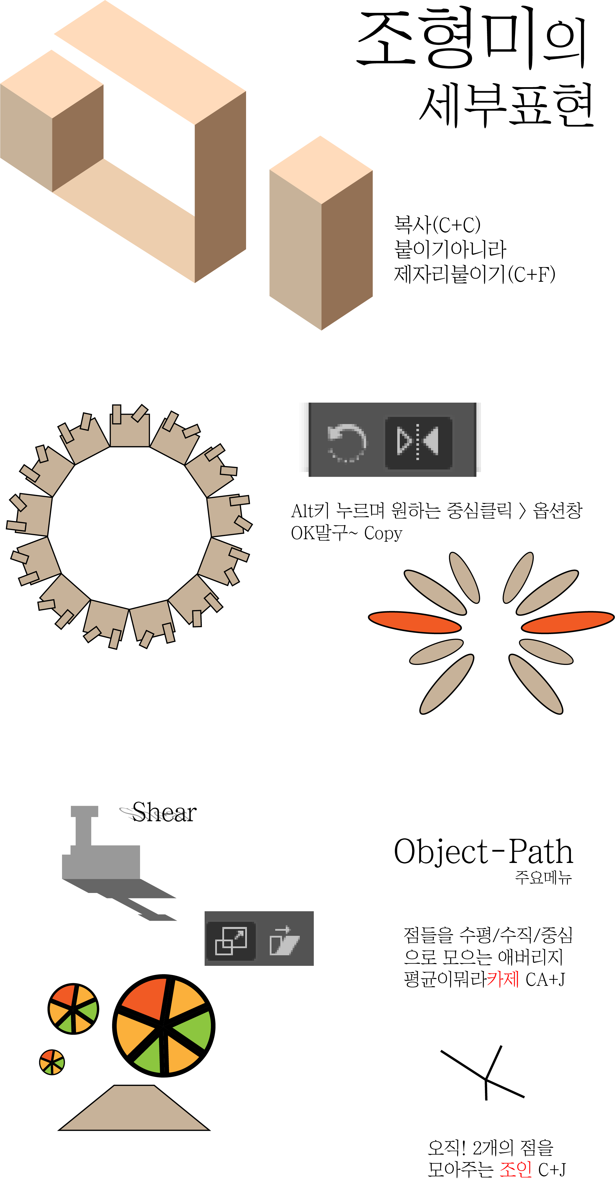 앞에서 소개한 도형들 겹쳐서 오브젝트들을 새로운 형상으로 만드는 패스파인더를 숙지한 상태에서 배워야 합니다.