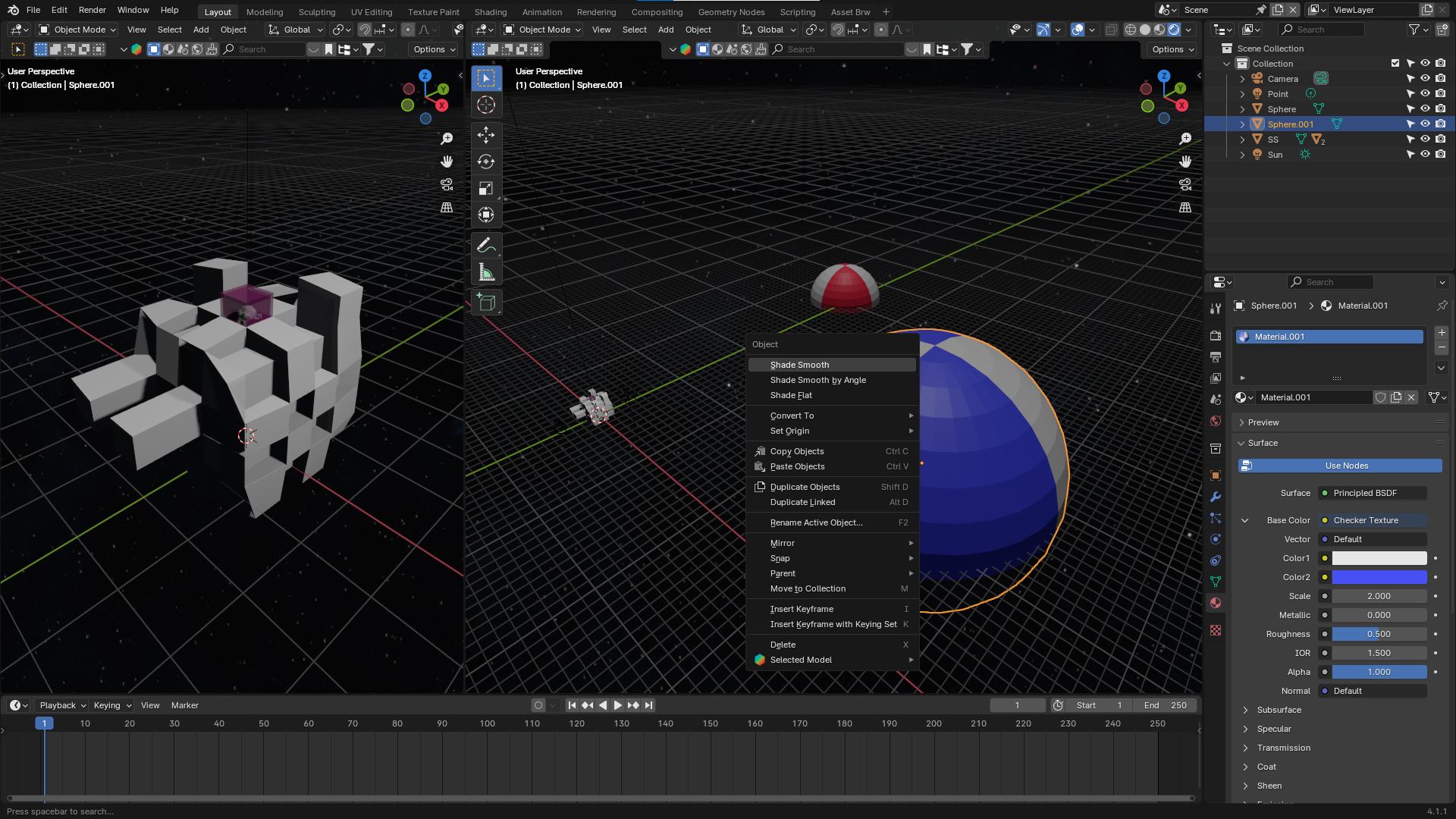 블렌더의 재질편집 아이콘과 유사한 체커형태의 2개의 색상으로 표현하는 방법을 소개합니다.