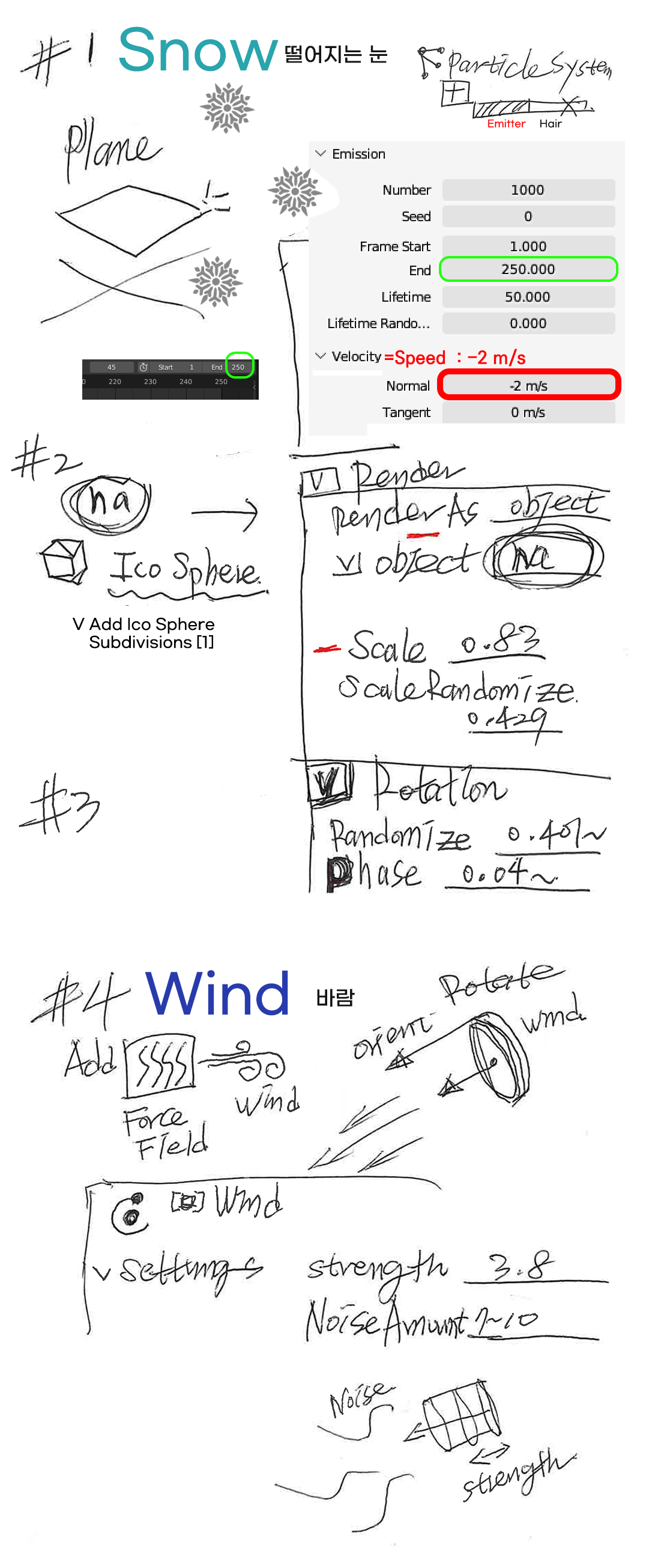 블렌더를 이용해서 봄, 여름, 가을, 겨울 등 사계절을 표현하는 방법들이 많습니다. 겨울이 특징적인 것들이 많은데 특히 천천히 떨어지는 눈, 바람에 눈이 한쪽으로 몰아서 세차게 내리는 눈보라치는 장면, 나무와 집위에 애드온으로 눈 덮힌 장면등 겨울풍경, 겨울의 산타클로즈가 등장하는 크리스마스를 표현할 분들은 아래 사용법과 Blend파일 원본을 드리니 작품제작에 활용해보기 바랍니다.