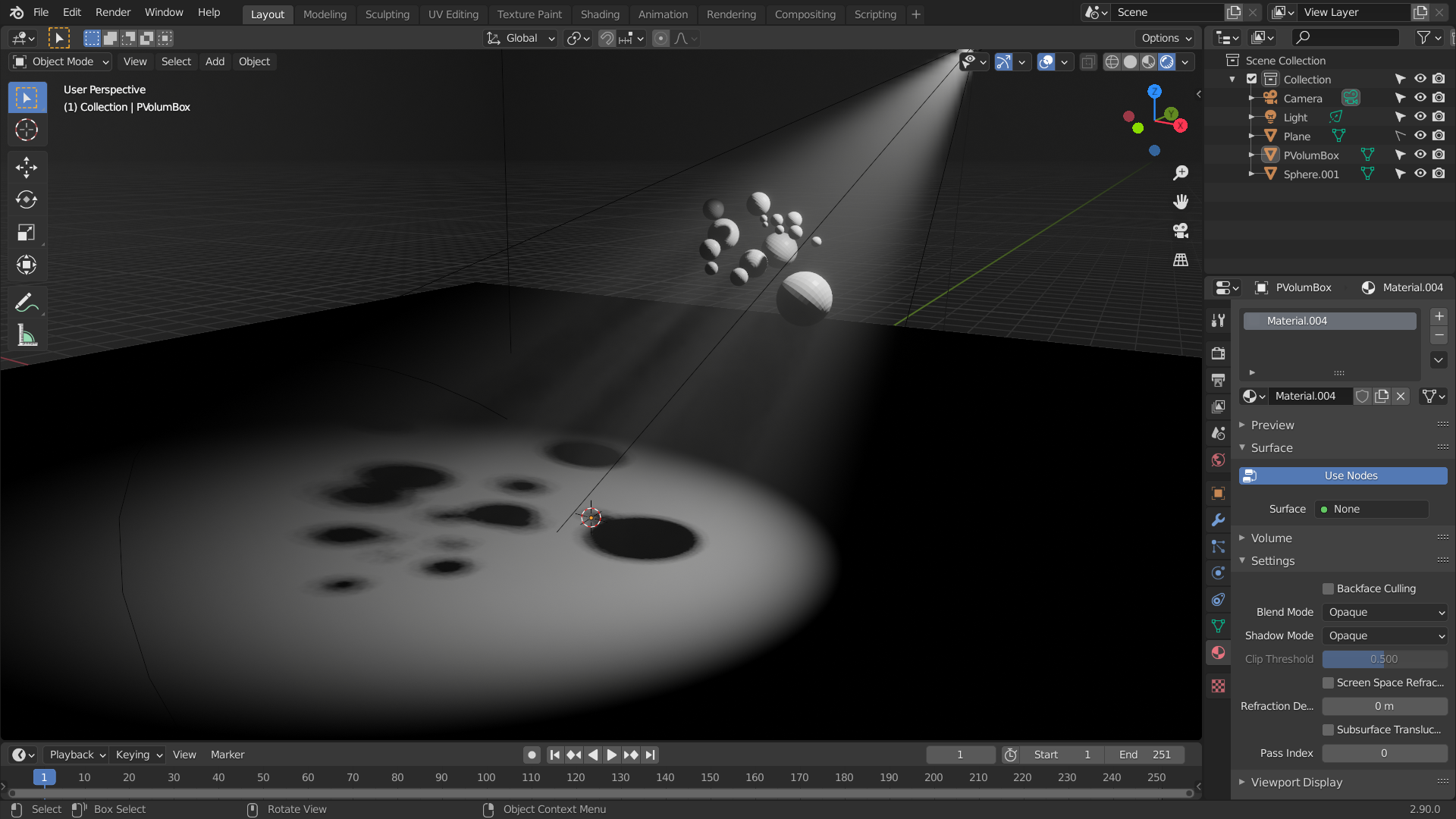 03. Shading WS에서 Principled BSDF를 X 지우고, Principled Volume을 추가하고, Density 값을 0.1~ 0.2 정도주면, 신의 계시를 받은 신비한 빛과 그림자효과인 볼륨쉐이딩 결과물을 확인할 수 있다. 이때 다른 조명은 포함되지 말아야 효과가 잘 보여진다.