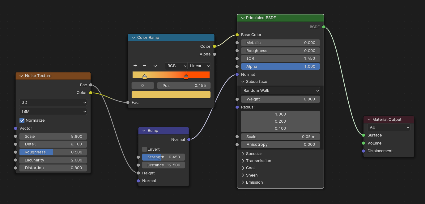 Color Ramp: 2개의 색상을 표면에 배분해서 준다. 선택사양이다. [▶Menual]