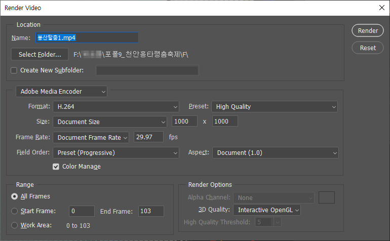 File-Export-Render video-이름확인 변경 [Render] 잘린영상으로 재저장