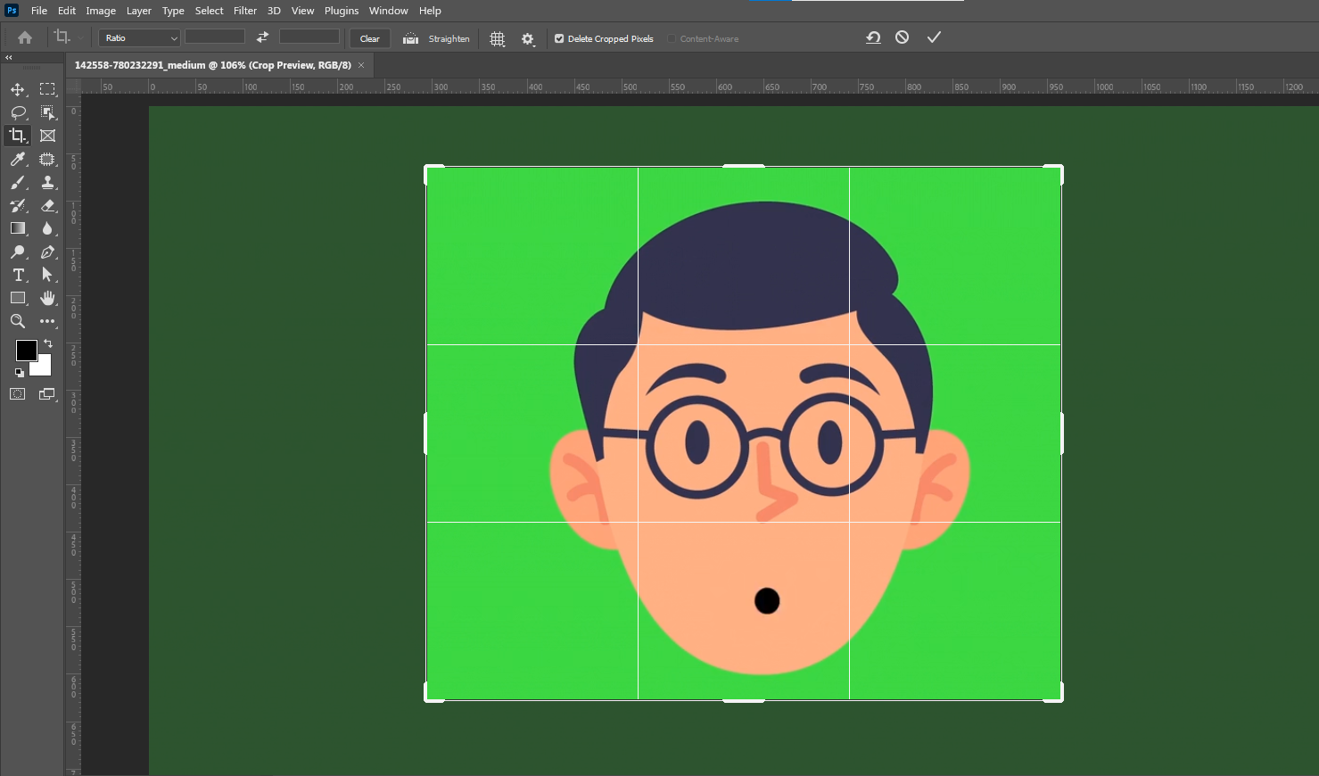 포토샵을 실행하고, 영상을 던진다! ㄴ/ㄱ 형상의 크롭(자르기)툴로 자른다.