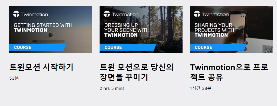 게임엔진인 언리얼 엔진을 탑재한 Twinmotion의 사용법은 아래 링크를 통해 다양한 튜토리얼 동영상을 통해 쉽게 배우고 적용할 수 있습니다.