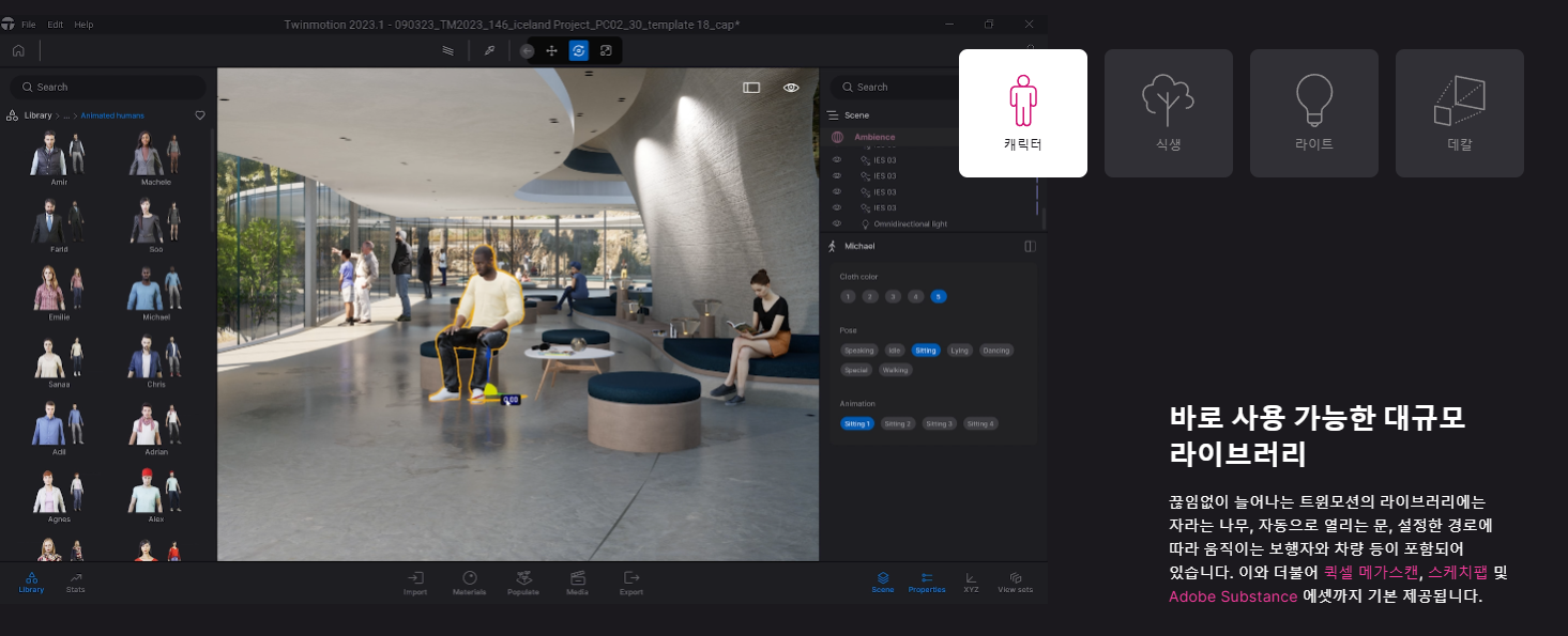 Twinmotion은 건축, 건설, 인테리어, 조경등의 분야에 특화된 실시간 렌더러입니다.