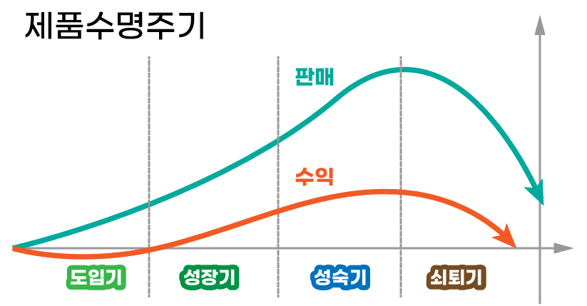 👍 제품수명주기 도입기 ➜ 성장기 ➜ 성숙기 ➜ 쇠퇴기