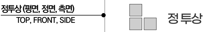 [제 4각법] 눈-물체-화면-눈의 순서. 물체가 눈과 화면 사이에 있을 때 사용