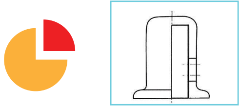 ② 한쪽 단면도(반 단면도) : 1/4 단면도