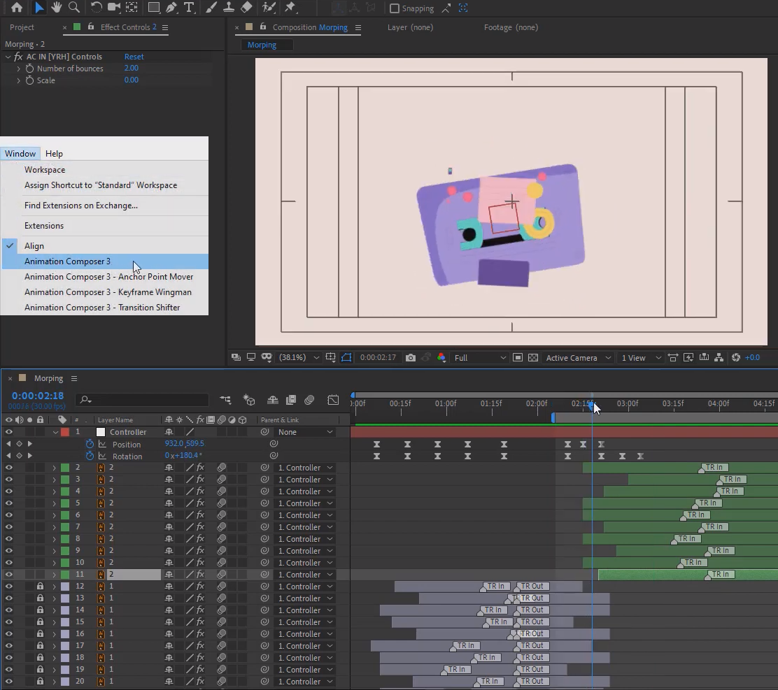 애니메이션 컴포저를 애프터이펙트에 설치하고 사용하는 방법에 대한 튜토리얼을 참고하세요.