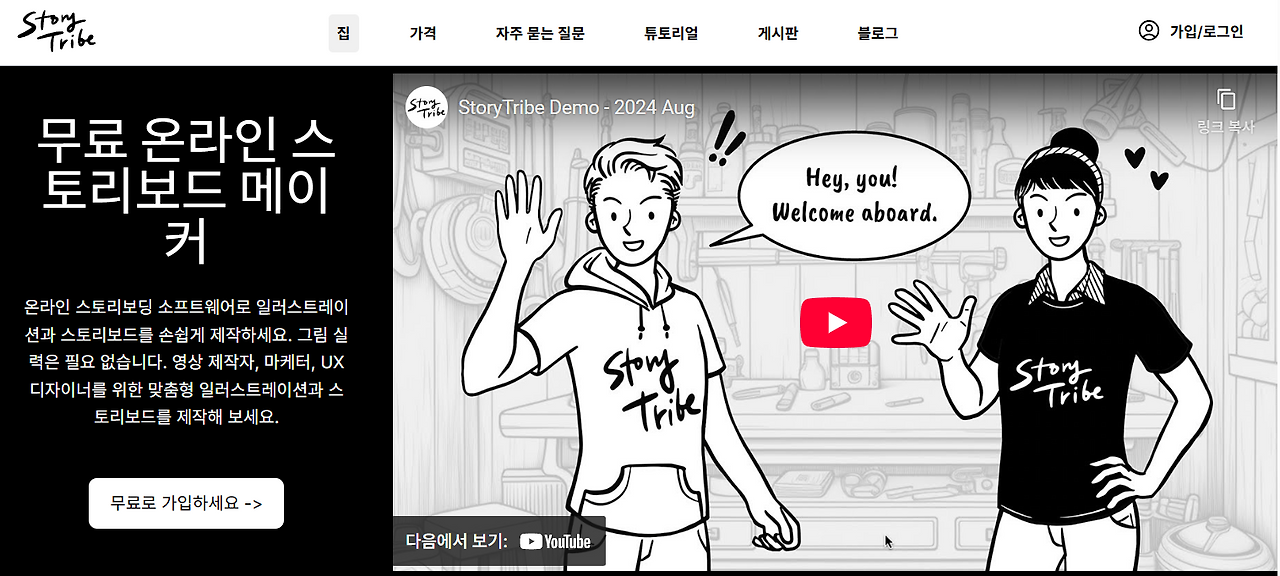 ▼요즘은 그림실력이 없어도 StroyTribe 스토리보드를 무료로 제작할 수 있는 온라인 서비스가 있습니다. 과제용, 포폴용, 개인적 목적의 사용에는 저작권에서도 자유로운 스토리 트리브를 활용해보세요.[저작권정책보기]