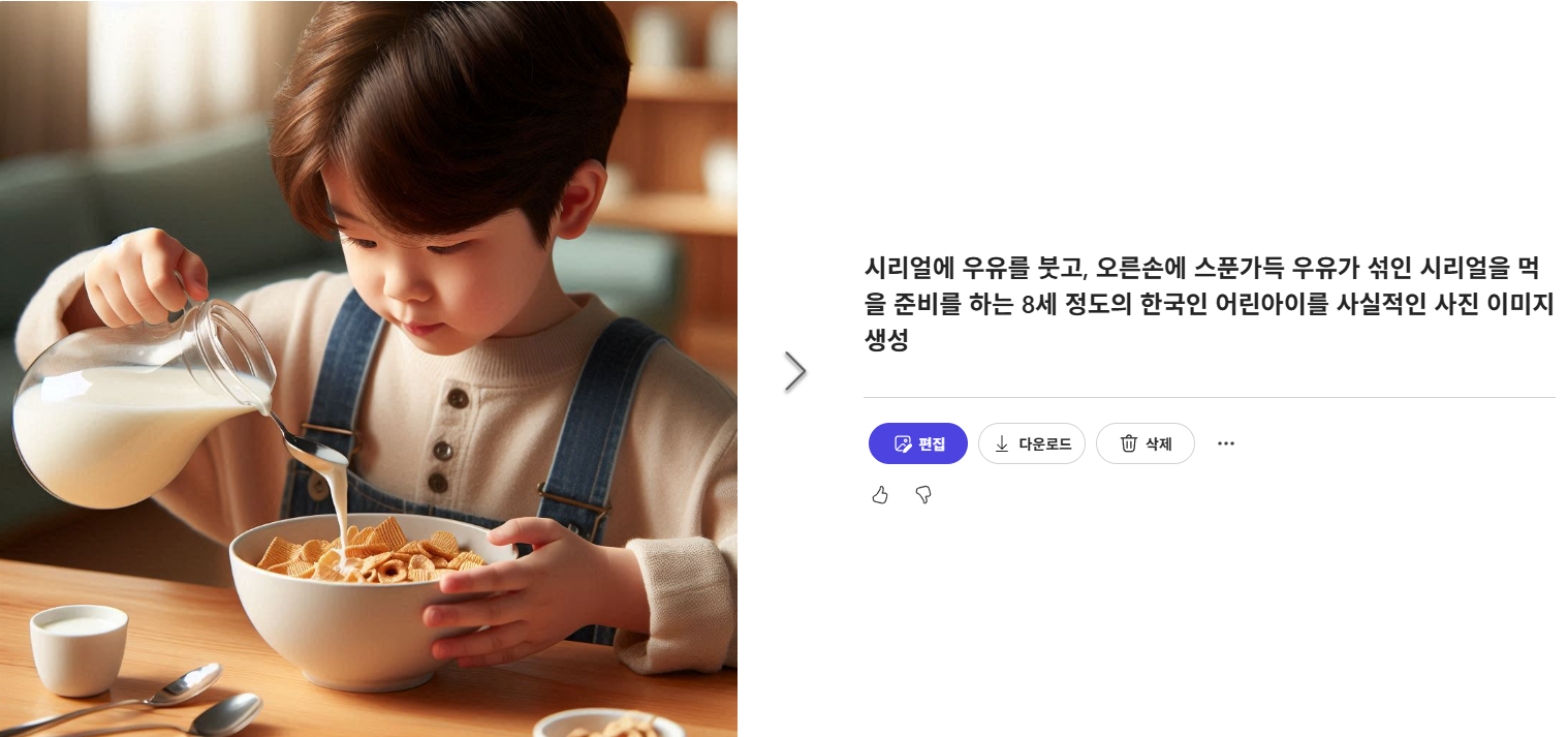 ◆ 시리얼을 먹고 있는 어린이와 엄마는 4개정도 생성함