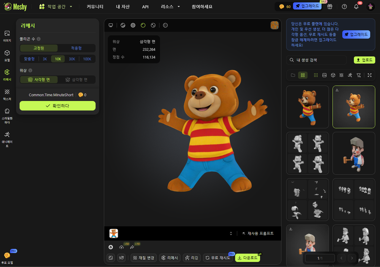 2. Meshy 정식 회원용, 이미지로 3D 모델링을