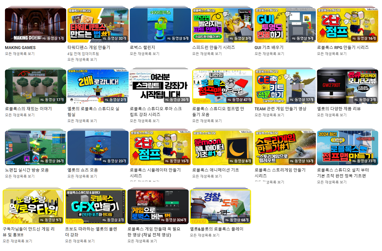 로블록스 스튜디오의 GUI(Graphic User Interface 사용자환경)에서 게임을 제작하고 자체에서 제공하는 서버환경에서 별도 호스팅없이 게임을 공개해서 플레이할 수 있는 환경을 제공합니다. 활발한 크리에이터 커뮤니티와 함께 할 수 있는데, YouTube에 다양한 사용법 강좌인 Tutorial이 많이 있습니다. 엘롯의 튜토리얼은 그중 하나입니다.