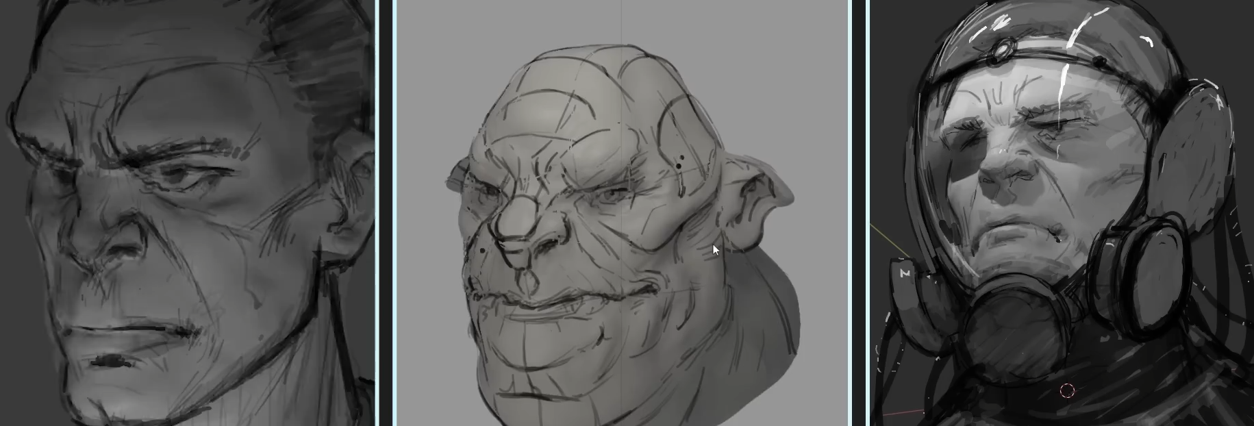 블렌더에서 스컬프팅 조소작업 후 그리스연필로