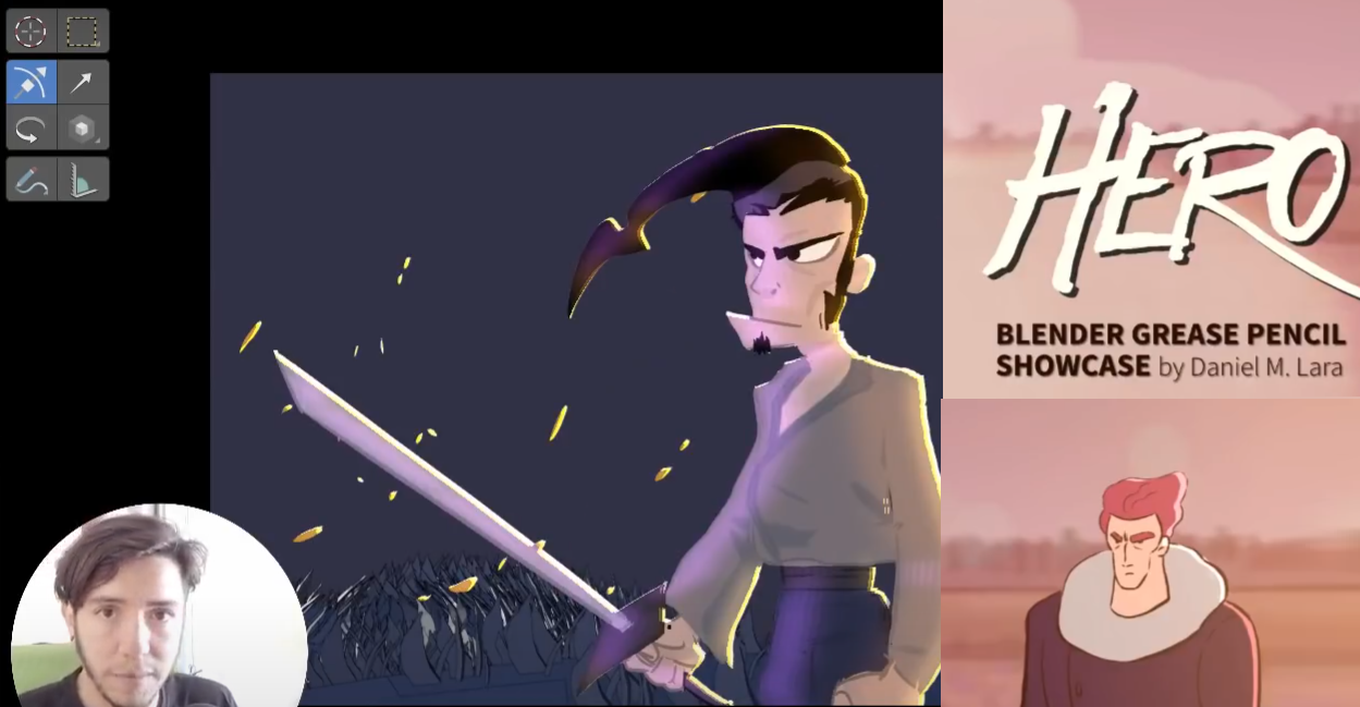 그리스 펜슬(Grease pencil)은 용융 후 부드러운 동물성 또는 식물성 지방, 또는 보다 일반적으로 기름과 같은 두꺼운 물질로 된 색상의 왁스로 만든 필기 도구로 쉽게 색연필이라고 보면 된다. 나라 이름과 윤활유 이름 모두 그리스(Grease) 이다. 아래는 Blender 재단의 그리스펜슬 프로젝트 'Hero' 의 스텝 중 한명인 파블로 바즈퀘즈(Pablo Vazquez)의 유튜브채널 영상이다.