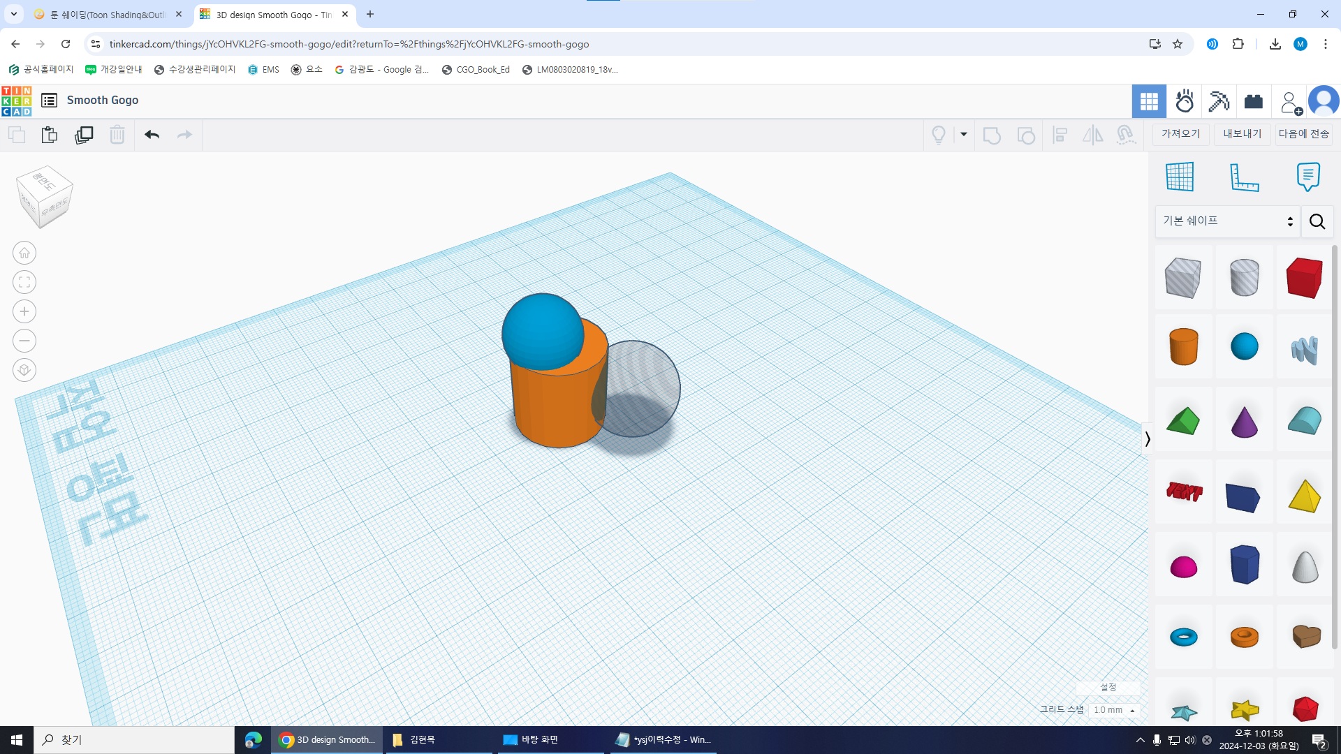 3D모델링용 틴커캐드는 브라우저로 어디서나 할 수 있어 편하고 쉬워요.