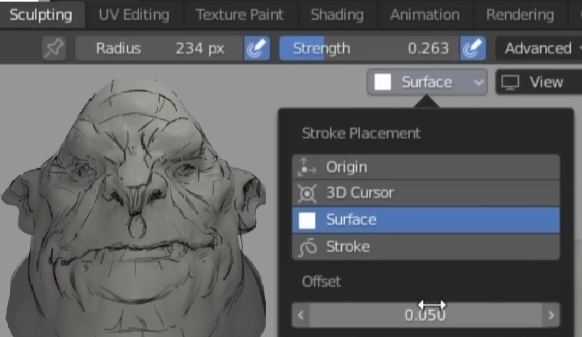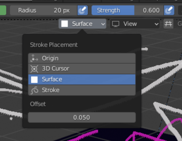 - Offset : 메시 표면에서 새 스트로크를 배치할 거리입니다.