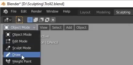 02. Mode를 Draw Mode 로 변경한다!
