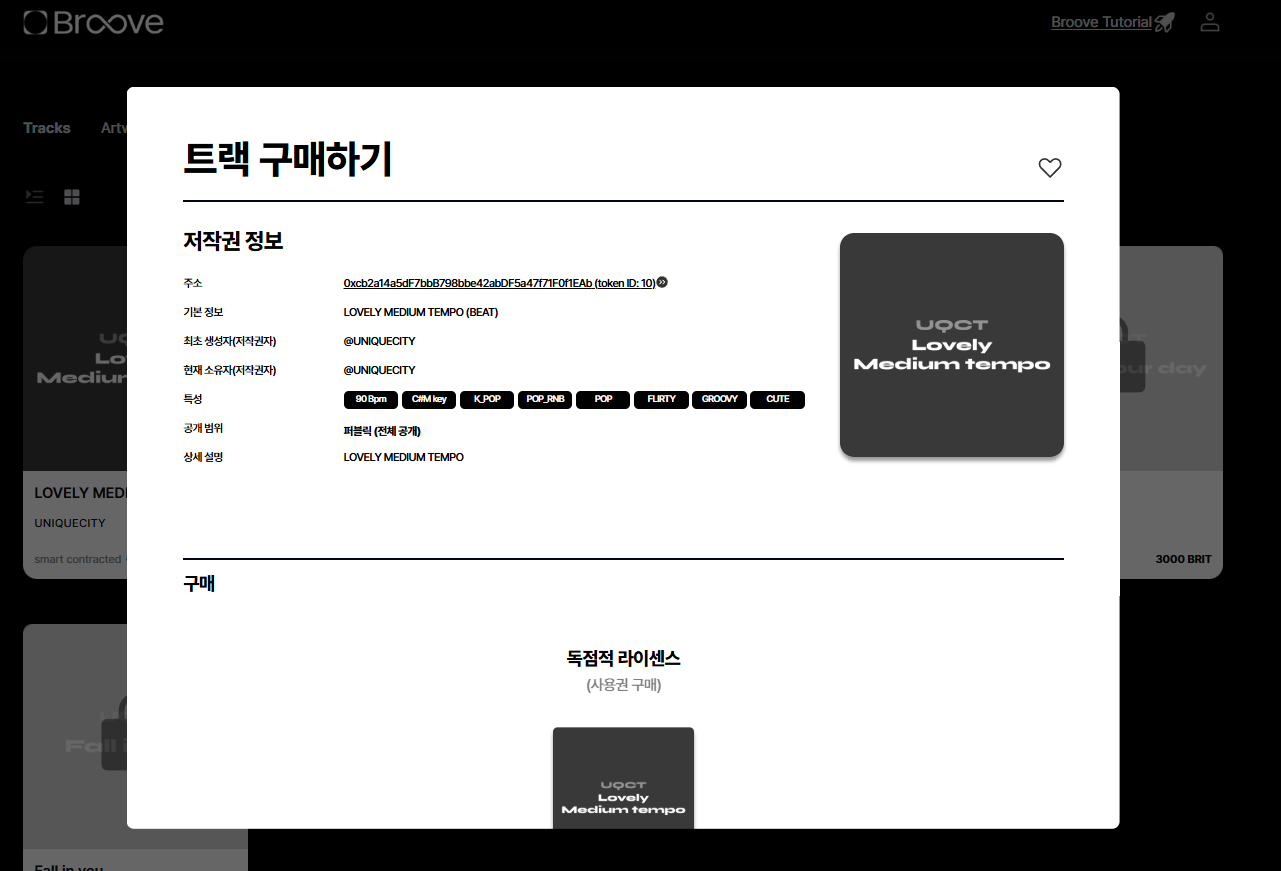 이러한 NFT들은 구매자가 창작물을 구매했을 경우, 해당 유저의 지갑으로 이동됩니다. 트랙 업로드를 위해서는 저작권 NFT를 보관할 카이아 지갑 설치를 위해 PC 크롬 브라우저를 사용하시는 것을 권장드립니다!