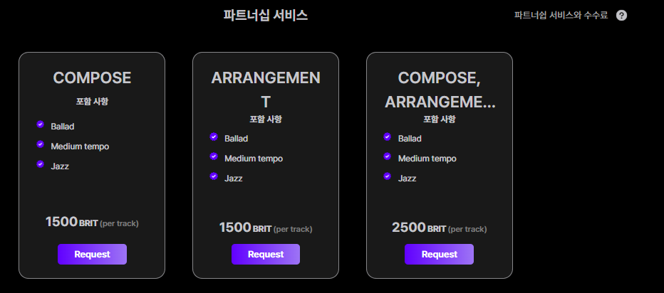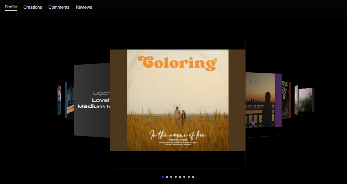 포트폴리오는 크리에이터의 자기소개, 파트너쉽 서비스 및 각종 정보를 알기 쉽게 정리해놓은 페이지에요. 포트폴리오를 더 예쁘게 수정할수록 다른 크리에이터들이 당신과 협업하고 싶어할 가능성이 높아지겠죠? 브루브에 업로드한 트랙 및 아트워크 또한 볼 수 있고, 코멘트를 달거나 리뷰를 남길 수도 있어요. 1번에서 얘기했듯이 파트너쉽 서비스 또한 포트폴리오에서 시작할 수 있어요.