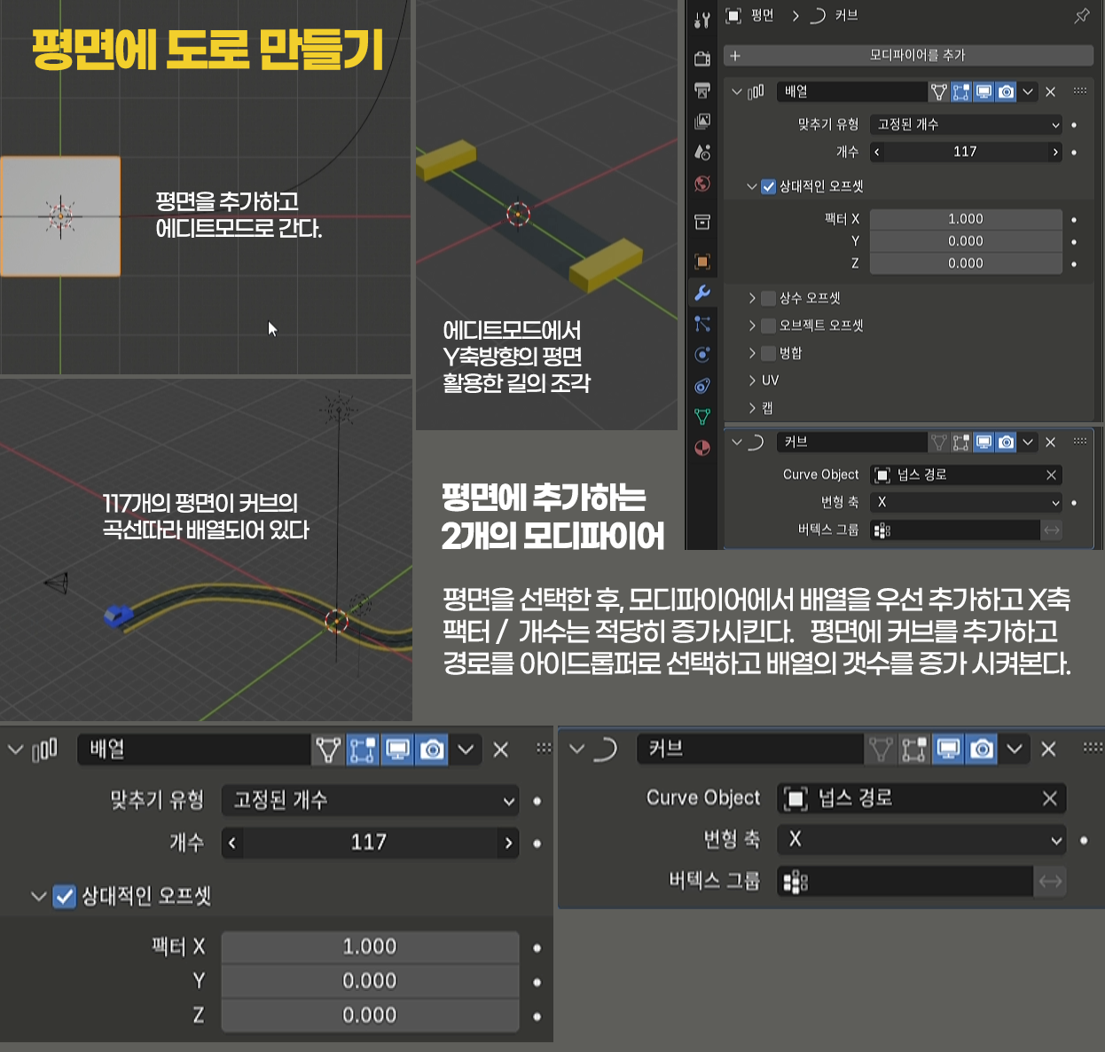 블렌더 자체내의 선형태인 베지어 커브를 따라가는 Path Animation에 대해 소개합니다. 커브라는 2D의 그래픽의 펜툴을 사용하여 그린 것 같은 형태의 경로를 자연스럽게 따라가는 3가지 다른 경로애니메이션을 구현해봅니다.